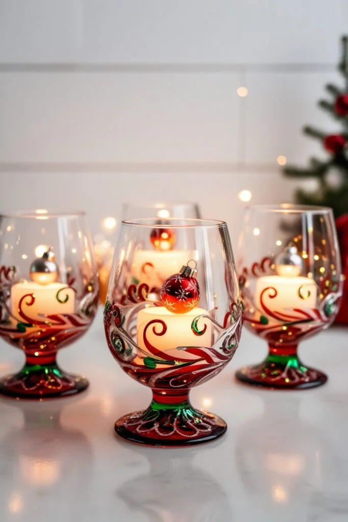 9. Holiday Wine Glass Candle Holders