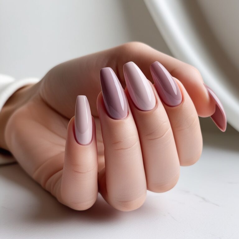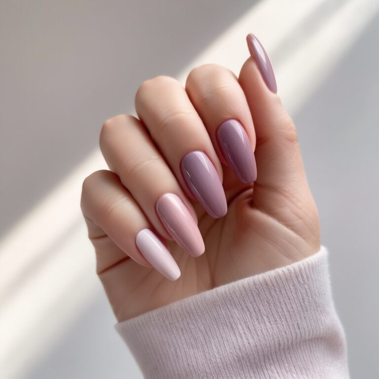 Soft mauve nail colors blended into a subtle gradient feel calm and feminine. It’s one of those September nail designs that looks effortless but polished. Finish it with a glossy top coat to really make the ombré pop. Simple, pretty, and very wearable.