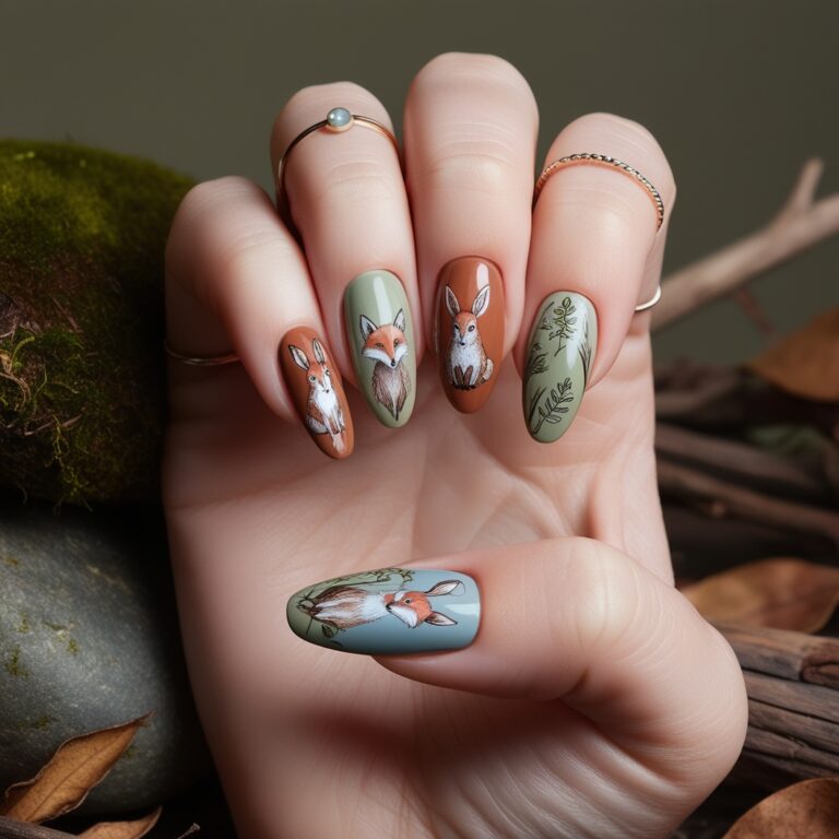 This one’s just fun. Cute woodland animal nail art with foxes, owls, or squirrels brings playful fall energy. Use earthy tones to keep it cozy and not too loud. Perfect for sweater weather and creative fall nail art lovers.