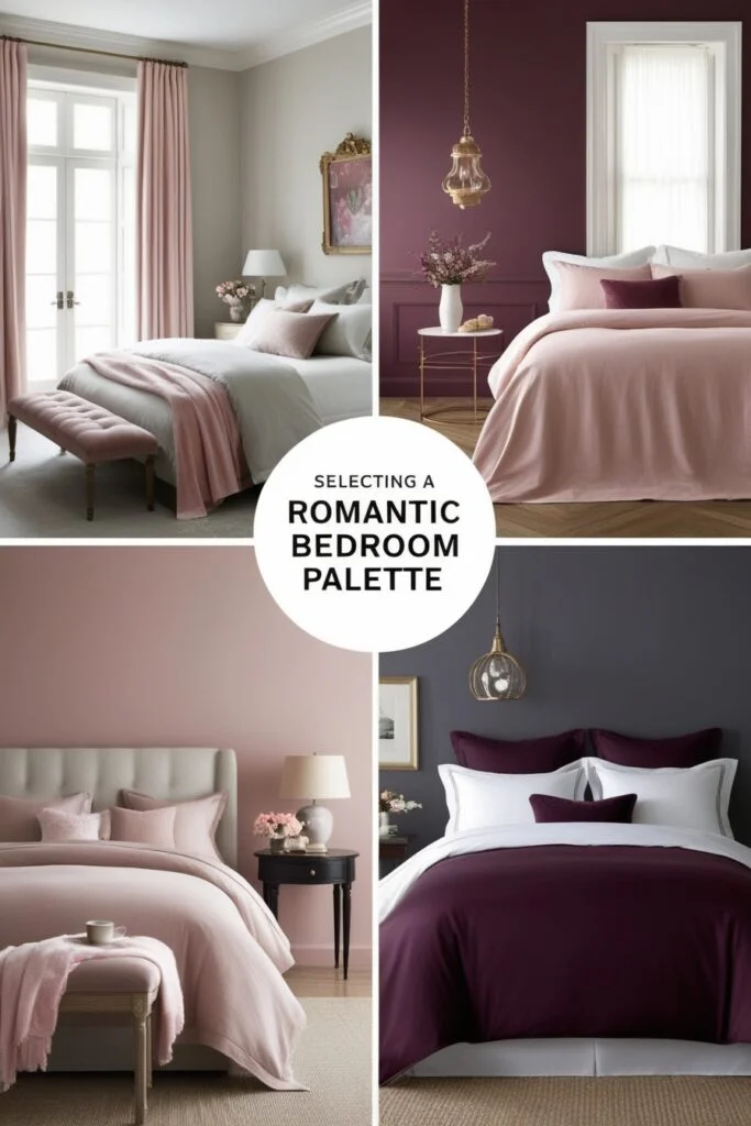 Color matters more than you think. Soft bedroom colors like blush, cream, or warm gray keep things calm and cozy. Want more passion? Go deeper with burgundy, plum, or navy. The right romantic color palette sets the tone and pulls the whole room together.