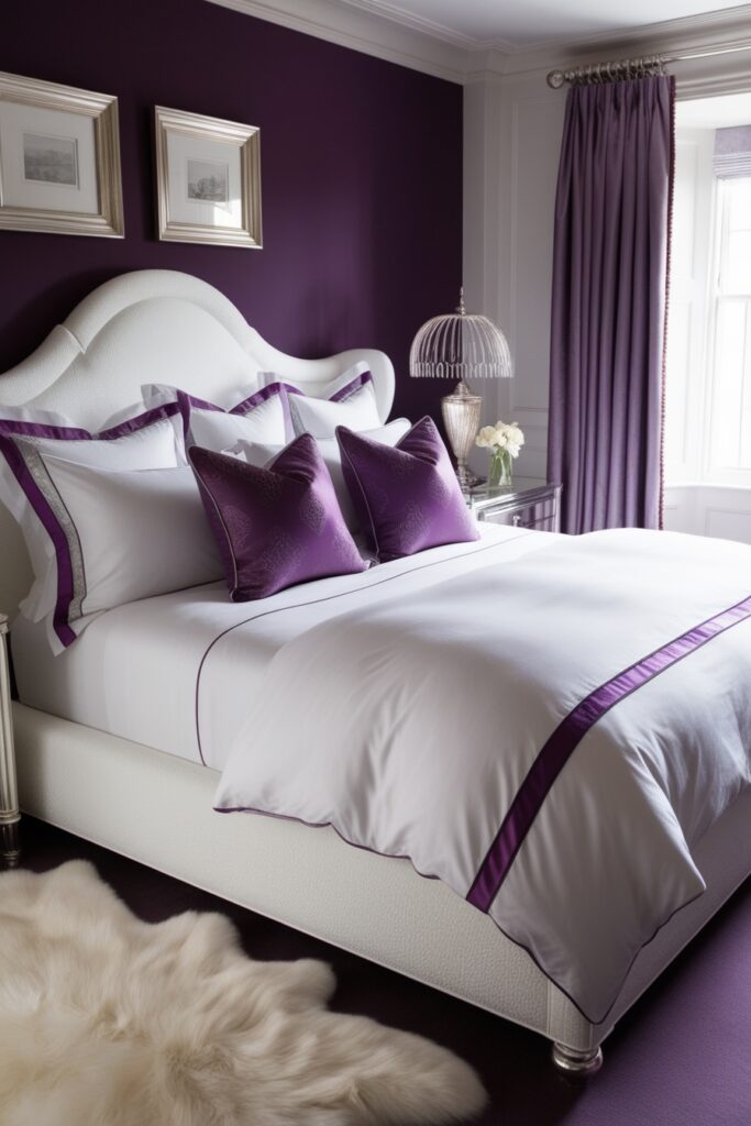 Violet bedroom decor is bold, stylish, and full of personality. Deep purple walls paired with soft lavender and white keep things balanced. Add silver accents or mirrored furniture for a modern glam feel. Plush fabrics and cozy textures bring it all together. This look is perfect for a luxury bedroom design that feels confident and chic.